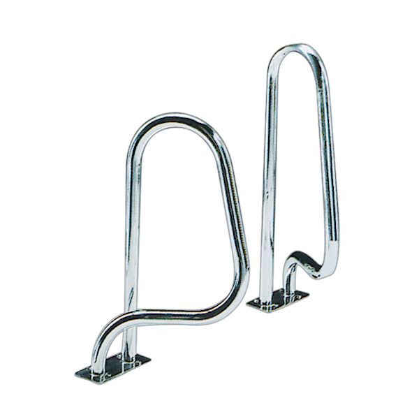 Din țeavă S.S. AISI-316 lustruită Ø 43 mm. Șine de ieșire furnizate ca pereche, inclusiv plăci de fixare, șuruburi și dibluri.
